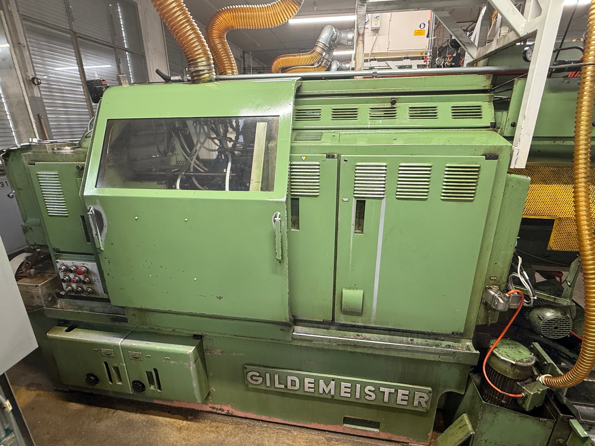 GILDEMEISTER AS 20 ist ein Mehrspindeldrehautomat hoher Präzision, ausgelegt für hohe Genauigkeit und Zuverlässigkeit. Arbeitsleistungen: 6 Spindeln, max. 12 Werkzeuge; Durchlass rund 20 mm, vierkant 14 mm, sechskant 17 mm; Längsschlittenweg 50 mm, Querschlittenweg 42 mm; max. Stangenvorschub 100 mm; bis zu 73 Teile; Stückzeit 1,38–58,78 s. Technische Daten: 81 Drehzahlstufen 214–5168 t/min; Anschluss 50 Hz 3x400 V; Leistung 11 kW; Gewicht ca. 5000 kg; Abmessungen L 3315 x B 1400 mm. Zubehör: Stangenlademagazin, Kühlmitteleinrichtung, Kühlmittel-/Nebelabsaugung. Ermöglicht enge Toleranzen; typische Branchen: Automotive, Uhrenindustrie, Werkzeugmaschinen, Luftfahrt, Medizintechnik.