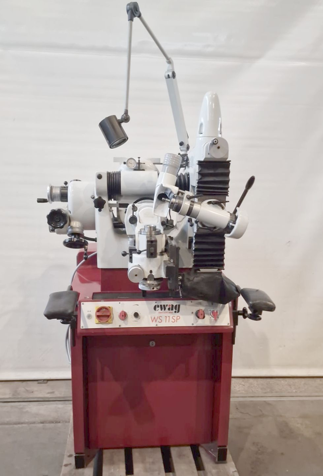 EWAG WS 11 SP est une affûteuse d'outils, conçue pour la précision, une grande exactitude et la fiabilité. Capacités: axe X/Y/Z 100 mm, diamètre de la meule 75 mm, tours poupée porte-pièce 100-1300 t/min, course verticale tête 100 mm, inclinaison horizontale 165°, vitesse broche rectif. 2500-7100 t/min, nez de broche pour pince 20 W. Spécifications: branchement 50 Hz 3x380 V, puissance totale 2 kVA, poids env. 400 kg, encombrement L850×l850×H1580 mm. Accessoires: flasque pour meule, aspiration, jeu de meules, lampe, tête hélicoïdale W20, unité d'avance (axe Z) 4 E-M, course de rectification 3 J. Permet tolérances serrées; secteurs: automobile, horlogerie, machine-outil, aérospatial, médical