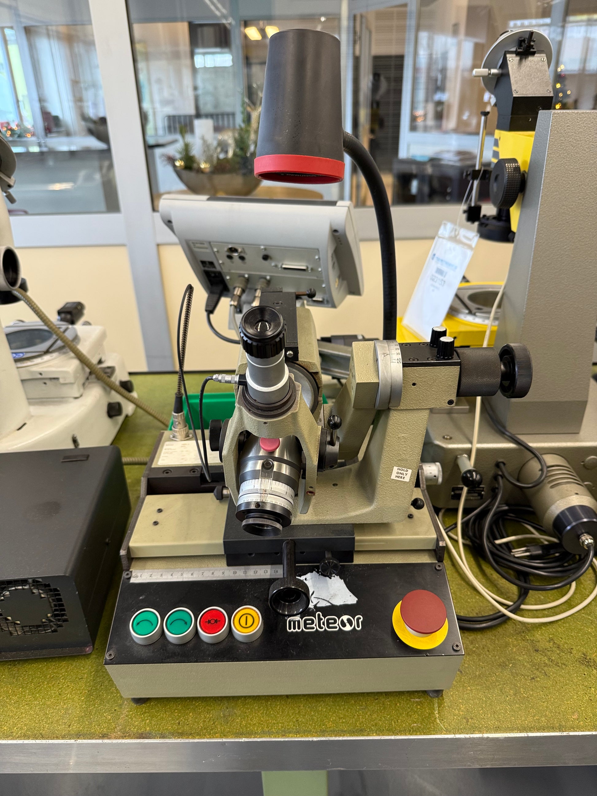 METEOR MM 10 is a Drill grinder of high precision, engineered for high accuracy and reliable operation. Drill capacity 0.2–12.5 mm, drilling length 160 mm; point angle 90°–180°, relief angle up to 45°. Grinding wheel 5400 t/min; voltage 230 V; weight approx. 27 kg; dimensions L460×W270×H420 mm. Includes microscope and work lamp. Enables tight tolerances; suitable for automotive, watchmaking, toolmaking, aerospace and medical sectors.