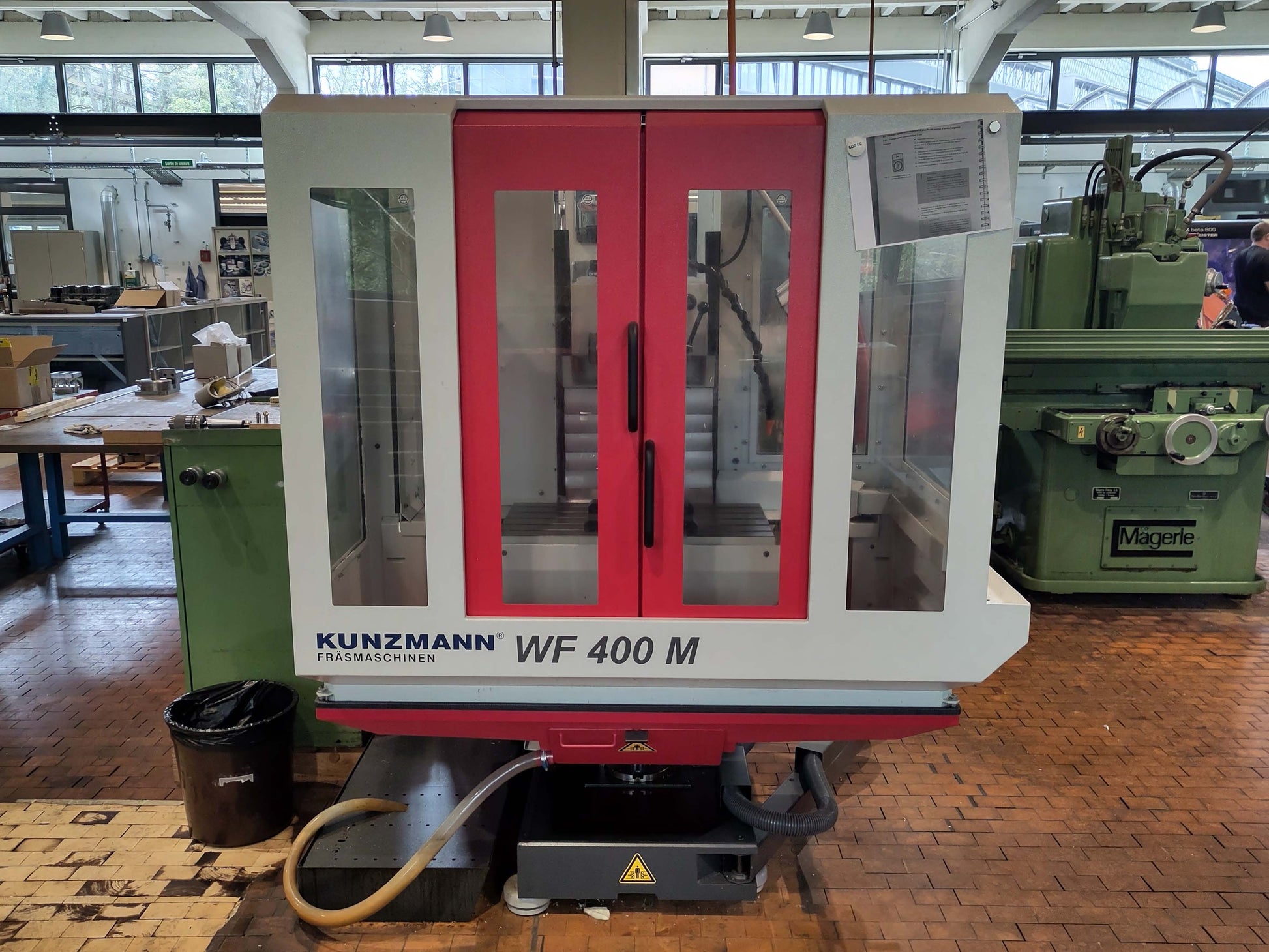 KUNZMANN WF 400 M is a CNC milling machine for precision, high accuracy and reliability. Table 650×350 mm, table load 250 kg; travels X/Y/Z 400/350/400 mm; head ±90°. Spindle SK40 1–4000 t/min, 5.5 kW; axes X/Y 5 m/min Z 4 m/min; 3×400 V, 12 kVA; coolant 75 l; automatic central lubrication; interfaces RS232/Ethernet/USB. Suited to tight tolerances in automotive, aerospace and medical sectors.